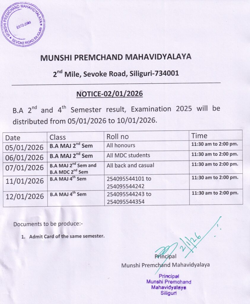 Distribution of result of 2nd and 4th Sem, Examination 2025